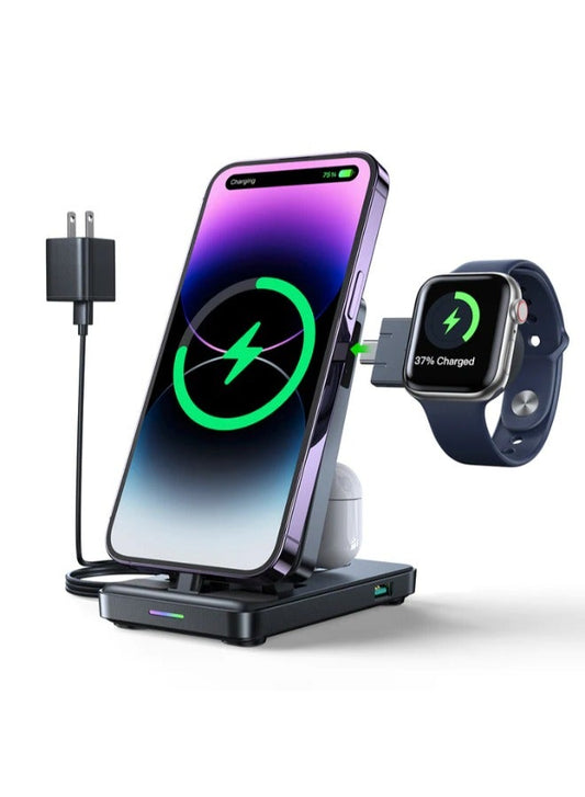 JR-WQS02 4-in-1 Foldable Charging Station (Lightning Version) Black